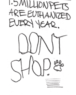 preliminary sketches; emphasizing the number of pets that are euthanized in shelters each year